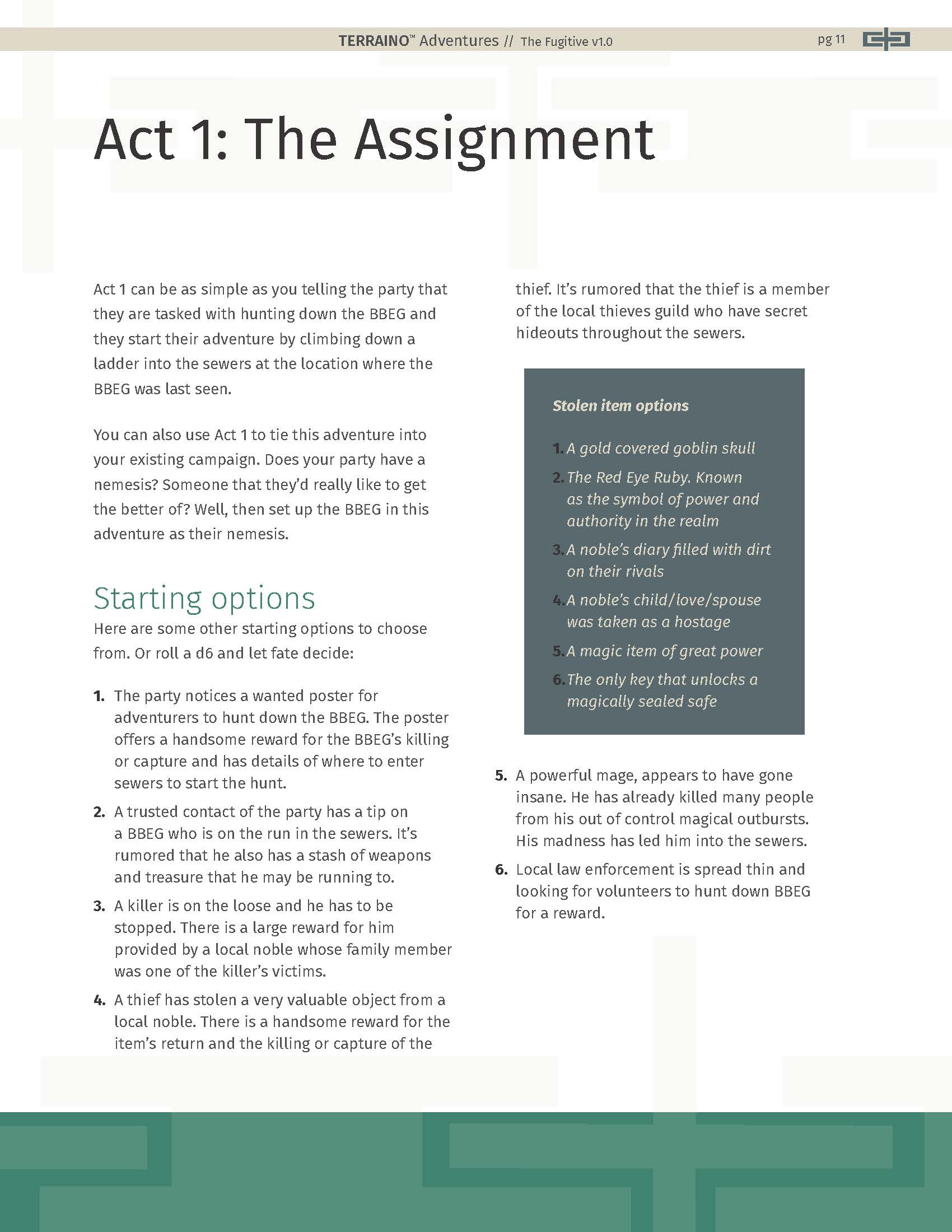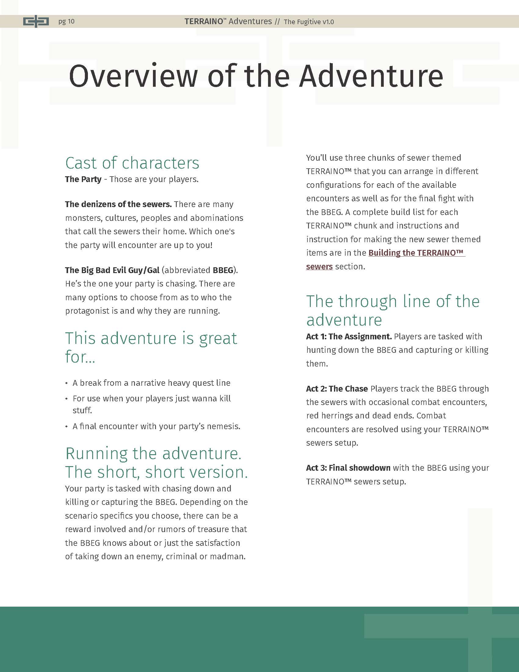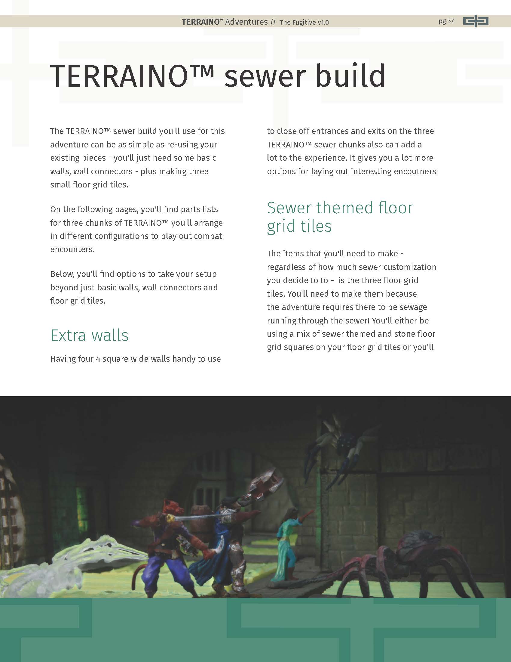 You'll get a complete, easy-to-prep adventure with plug-in encounters you can mix and match to make the adventure your own as well as new TERRAINO templates, textures, and build instructions for the new sewer-themed TERRAINO! Just like everything TERRAINO, this adventure and the TERRAINO you'll use for it are completely modular. That means this one adventure has hundreds of different stories you can tell depending on how you mix and match the included modular scenarios, encounters, and antagonists.